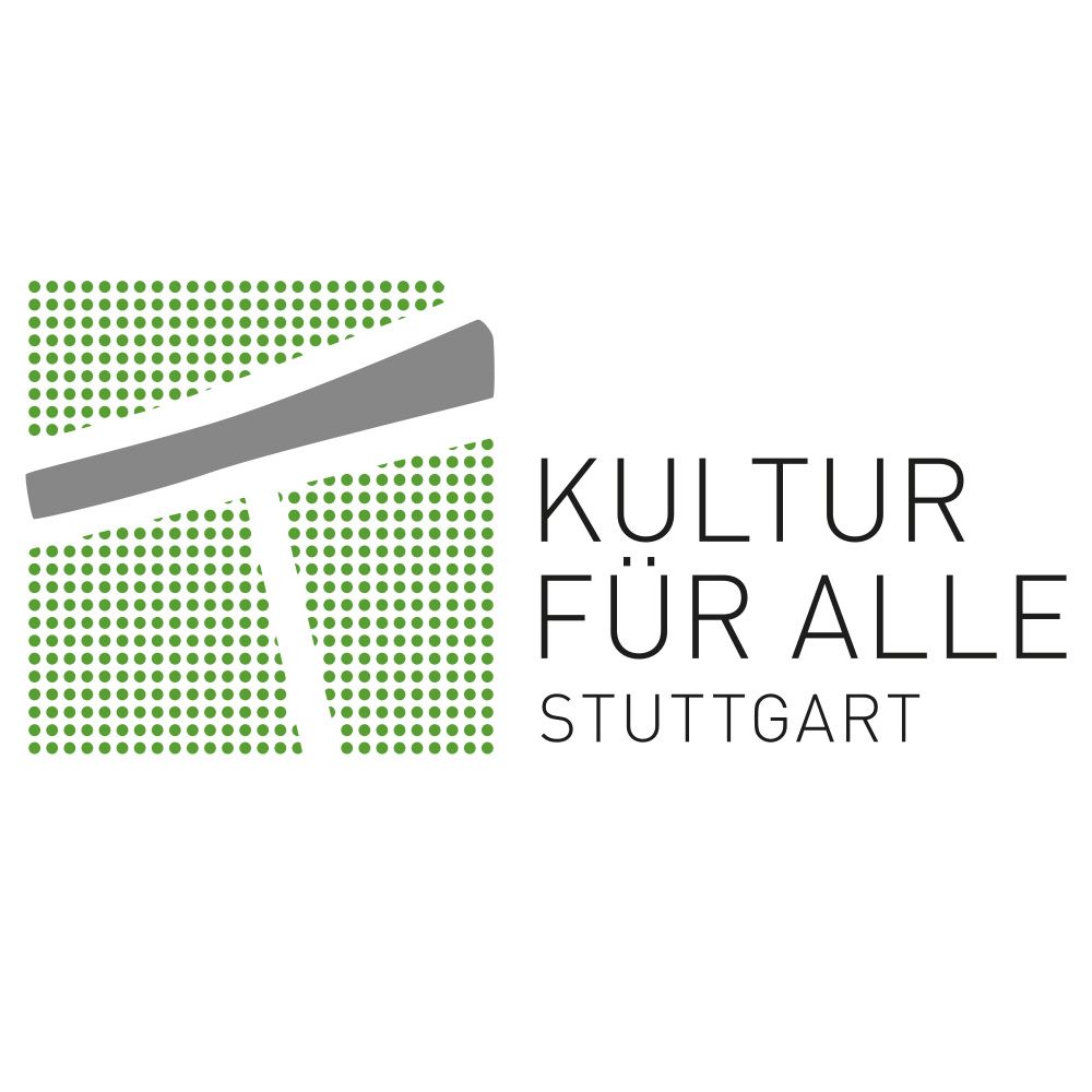 Logo mit einem grün gepunkteten Quadrat, einer grauen abstrakten Form und dem Text KULTUR FÜR ALLE STUTTGART in schwarzen Großbuchstaben rechts – perfekt für Klassik- und Konzertliebhaber in Stuttgart.
