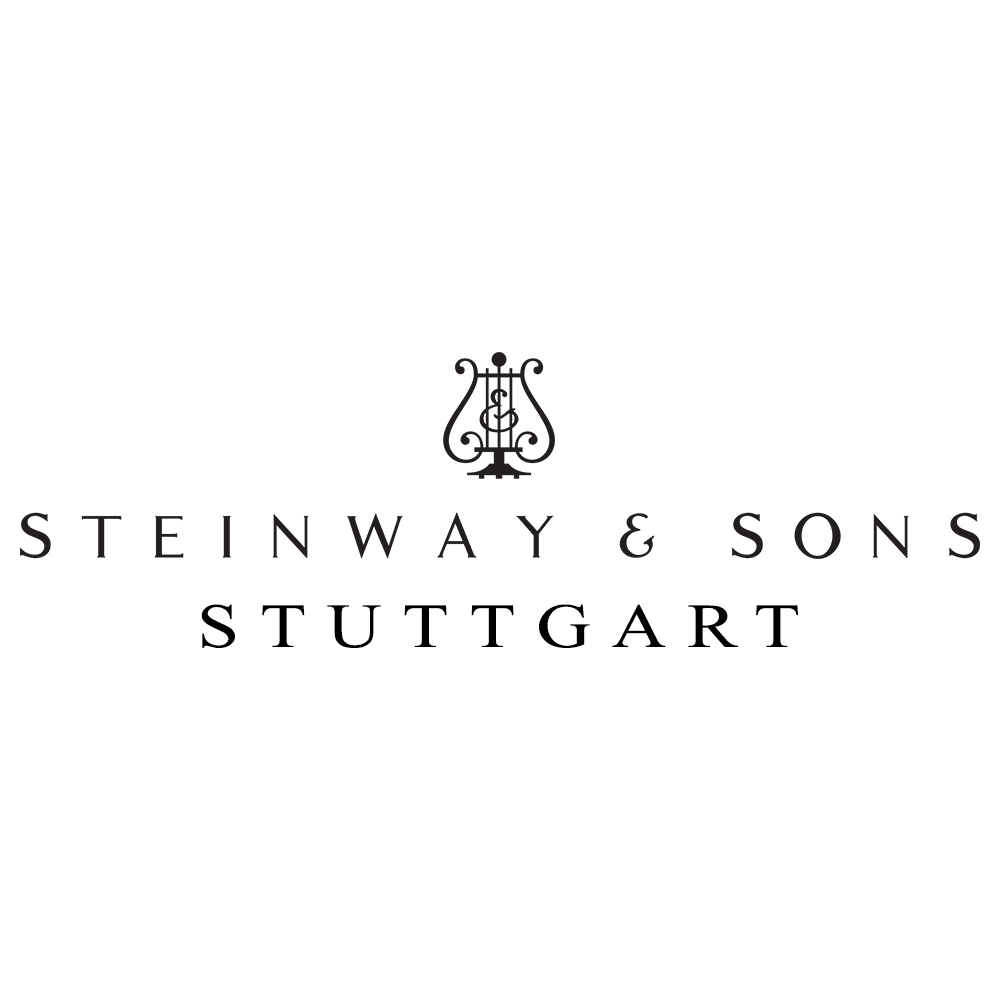 Schwarzes Steinway & Sons-Logo mit einem stilisierten Lyra-Symbol über dem Firmennamen in Großbuchstaben und STUTTGART in fetten Großbuchstaben darunter. Perfekt für jedes klassische Klavierkonzert. Weißer Hintergrund.